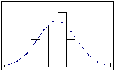 Задача о наилучшем выравнивании статистических рядов, как и вообще задача о наилучшем аналитическом представлении эмпирических функций, есть задача в значительной мере неопределенная, и решение ее зависит от того, что условиться считать «наилучшим». При этом вопрос о том, в каком именно классе функций следует искать наилучшее приближение, решается уже не из математических соображений, а из сообрсжений, связанных с физикой решаемой задачи, с учетом характера полученной эмпирической кривой и степени точности произведенных наблюдений. Аналогично, при решении задачи выравнивания статистических рядов, прнципиальный вид теоретической кривой выбирается заранее из соображений, связанных с существом задачи, а в некоторых случаях просто с внешним видом статистического распределения. Пусть для случайной величины Х мы построили гистограмму, которая имеет вид, приведенный на рисунке. Естественно предположить, что исследуемая случайная величина Х подчиняется нормальному закону: