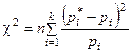 Проверяя согласованность теоретического и статистического распределений, будем исходить из расхождения между теоретическими вероятностями pi и наблюденными частотами pi*. Естественно выбрать в качестве меры расхождения между теоретическим и статистическим распределениями сумму квадратов отклонений (pi*-pi), взятых с некоторыми «весами» ci: