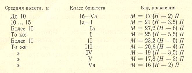 М=К(Н - а) П,где К и а — числовые коэффициенты, зависящие от породы; П-относительная полнота.