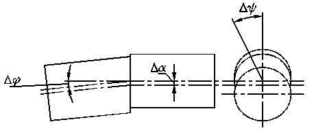 Взаимное расположение соединяемых отсеков на практике регламентируется допусками на перекос осей отсеков ∆φ, на смещение осей ∆α и на закручивание отсеков ∆ψ (рис. 4.1)