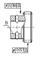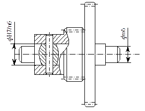 Учитывая, что в редукторе применяются зубчатые колёса и шестерни с модулем, от 0,4 до 1 мм и их размеры ограничены, а величина суммарного люфта в зацеплении не должна превышать 8-12 угловых минут, к зубчатым колёсам редуктора предъявляются достаточно жёсткие требования по точности изготовления. В частности, биение делительной окружности шестерни рис.7.11 относительно посадочного диаметра должно быть не более 0,016 мм.,, а сопрягаемые поверхности обрабатываются по 6-7 квалитетам точности.