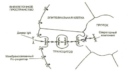 Трансцитоз IgA через эпителиальные клетки в проток железы