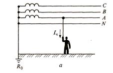 Iч – ток, протекающий через человека; R0 – сопротивление заземлителя