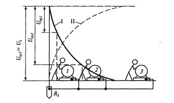 U3 – напряжение заземлителя, c – расстояние от заземлителя
