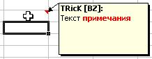 В верхнем правом углу ячейки с примечанием появится красный треугольник. При наведении мыши на эту ячейку появится примечание: