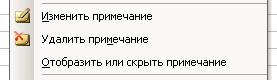 При щелчке правой кнопкой на ячейке с примечанием в контекстном меню появятся пункты для работы с примечанием: