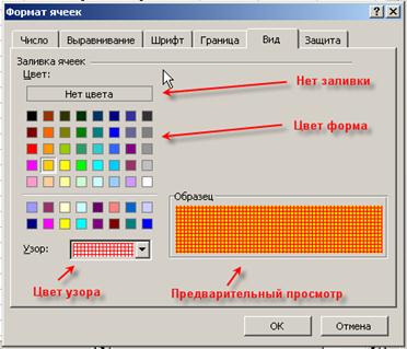 ; - окно "Формат ячеек", закладка "Вид":