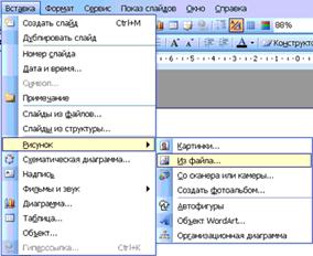 Выбрать команду Вставка / Рисунок. Далее можно выбрать: Картинки, Из файла, Со сканера и т.д.