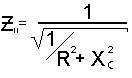 При параллельном соединении напряжения на R и C элементах равны, общий ток будет векторной суммой токов каждого элемента, а фомула импеданса будет следующей: