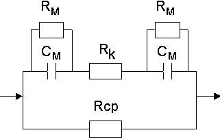 Анализ схемы показывает, что при увеличении частоты тока проводимость клеточных мембран увеличивается, а полное сопротивление тканевой среды уменьшается, что соответствует практически проведенным измерениям.