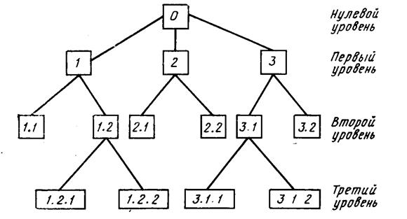 Глубина детализацин элементов дерева целей (число уровней дерева целей) в основном определяется целями исследования. Если поставлена цель достижения какого-либо результата, то построение дерева целей должно проводиться до ресурсного уровня. Если поставлена пель совершенствования методологии управления, то по«троение дерева целей достаточно провести до уровня мероприятий и задач. Кроме того, число уровней дерева целей зависит от числа элементов, полученных на отдельных уровнях. Желательно, чтобы каждый элемент дерева целей дезагрегировался не более чем на восемь – десять элементов. В противном случае необходимо вводить промежуточный уровень.