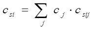 6.Определяются коэффициенты относительной важности сsi i-х элементов из 2-го уровня каждого эксперта s учетом их влияния на достижение целей j-го элемента 1-го уровня, т. е.