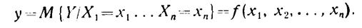 Эта засимость характеризуется формой и теснотой связи. При изучении статистических зависимостей форма связи характеризуется функцией р регрессии (линейной, квадратной, показательной и т.д.). Функция регрессии выражает математическое ожидание переменной У для случая, когда другая случайная переменная Х принимает конкретное значение. Для n-мерного случая функция регрессии определяется следующим образом: