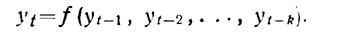 В более общем плане можно говорить о том, что величина у, тесно связана со значениями этого показателя за несколько предшествующих периодов. Это предположение лежит в основе построения так называемых автогрессионных моделей, которые в общем виде определяются следующим образом: