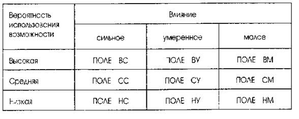 Для оценки возможностей применяется метод позиционирования каждой конкретной возможности на матрице возможностей (рис.6.2).