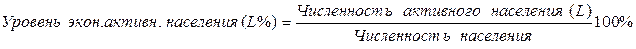 Исходя из такого определения рассчитывается уровень экономической активности населения – доля численности экономически активных людей в общей численности населения. Такой уровень подсчитывается по формуле (57):