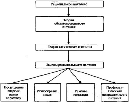 Практической реализацией постулатов теории адекватного питания являются законы рационального питания (рис. 4).