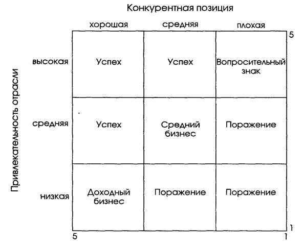 Рис. 8.1. Матрица «Привлекательность отрасли — конкурентная позиция"