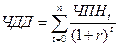 Чистый дисконтированный доход ЧДД (Net Profit Value, NPV) характеризует интегральный эффект от реализации проекта и определяется как величина, полученная дисконтированием (при постоянной ставке процента отдельно для каждого года) разницы между всеми годовыми оттоками и притоками реальных денег, накапливаемых в течении горизонта расчета проекта: