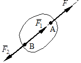 Пусть есть сила F в точке A. В точку B на линии действия силы F помещаем уравновешенную систему сил F 1 и F 2, так чтобы