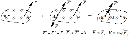 Теорема: Силу, приложенную к твердому телу, можно, не изменяя оказываемого действия, переносить параллельно ей самой в любую точку тела, прибавляя при этом пару с моментом, равным моменту переносимой силы относительно точки, куда сила переносится.