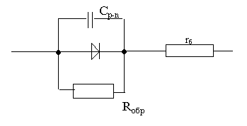 Диффузионная ёмкость Сдиф отражает физический процесс изменения концентрации подвижных носителей заряда, накопленных в областях p и n вследствие инжекции носителей. При протекании прямого тока в базе накоплен избыточный заряд неосновных носителей, пропорциональный этому току.. При изменении напряжения на переходе меняется и этот заряд: