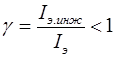 Iкб0 - обратный ток коллекторного перехода при отключённом эмиттере, т.е. при Iэ=0. a меньше 1, т.е. ток Iк – это часть тока Iэ.Величина a учитывает, во-первых, потери в эмиттерном переходе, т.к. не весь ток эмиттера за счёт инжекции носителей в базу, часть его за счёт инжекции других носителей в эмиттер. Коэффициент инжекции: