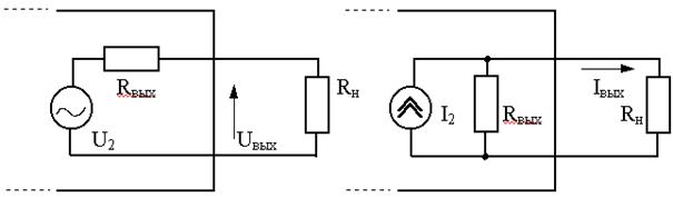 Со стороны выхода усилитель можно представить либо как управляемый генератор напряжения, либо как управляемый источник тока:
