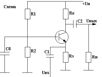 Усиление происходит без сдвига фазы. Коэффициент усиления можно получить высоким, если Rr®0, а Rк.н. велико. Если же нагрузка низкоомная, например, вход другого каскада с ОБ, то Kuo<1.