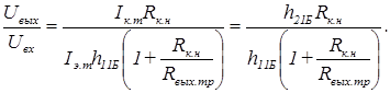 Представляя транзистор как управляемый генератор тока I2=h21БIэ, получим формулу для коэффициента усиления по напряжению. На средних частотах