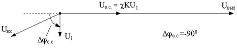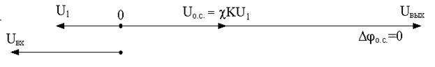 Найдется такая частота, на которой обратная связь становится положительной, т.е. вектор Uо.с суммируется с вектором Uвх.