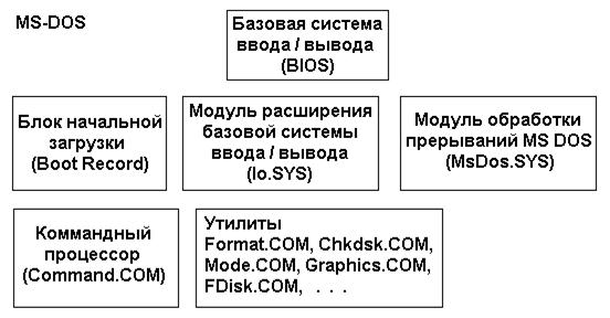 Блок начальной загрузки (загрузчик) — короткая программа, единственная функция которой считывать с диска в ОП две другие частей DOS — модуль расширения базовой системы ввода/вывода и модуль обработки прерываний.