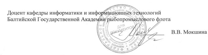 Рецензент: В.В. Мокшина – доцент кафедры информатики и информационных технологий Балтийской Государственной Академии рыбопромыслового флота