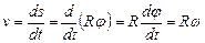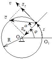 относительно оси, проходящей через точку O. Точка расположена на расстоянии R от оси вращения. Дуговая координата s точки, измеряемая от положения O1, определяется выражением
