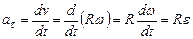 Касательное ускорение определяется, как произведение углового ускорения на расстояние до оси, и направлено по направлению углового ускорения.