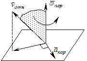 Направлен вектор кориолисова ускорения перпендикулярно плоскости, проходящей через векторы
