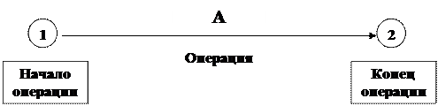 В стрелочных графах операции представляются стрелками (дугами). Их направление отражает ход времени. Традиционно последовательность стрелок ориентируется слева направо. Начало и окончание операций называют событиями. События обычно изображают с помощью точек (кружков).