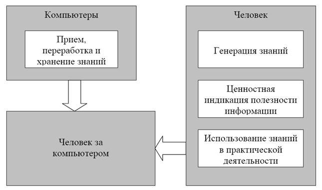 Человек создает новое знание и реализует его в практической деятельности, а компьютерная система, принимая на себя «черновую» работу по приему, хранению и переработке информации, обеспечивает скорость и точность принимаемых решений, а также оперативный доступ к необходимым знаниям.
