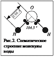 где q – абсолютное значение заряда диполя, l – плечо диполя, расстояние между центрами разноименных зарядов. Дипольный момент часто измеряют в дебаях(D). 1D = 3.33∙10 -30 Кл∙м. Молекула воды является полярной, так как электронные пары между кислородом и водородом смещены в сторону атома кислорода (рис. 2).