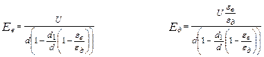 В однородном поле, в межэлектродном зазоре d, напряженность электрического поля может быть вычислена по формуле E=U/d.