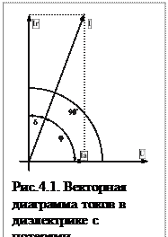 Диэлектрические потери электроизоляционных материалов характеризуются тангенсом угла диэлектрических потерь tg δ, где δ – угол, дополняющий до 90 град угол сдвига фаз между током и напряжением в схеме замещения диэлектрика, рис.4.1.