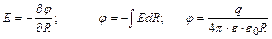 Найдем выражение для потенциала поля точечного заряда. Воспользуемся сферической системой координат. В силу сферической симметрии напряженность поля будет иметь только одну составляющую вдоль оси R. Из общего уравнения для определения потенциала следует, что