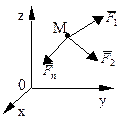 - соответственно суммы проекций сил, действующих на точку на оси координат.