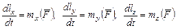 В уравнениях (42) моменты количеств движения и силы вычисляются относительно координатных осей.