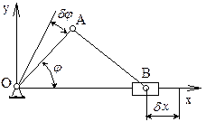Кривошипно-ползунный механизм имеет одну степень свободы. В качестве возможных перемещений могут приниматься параметры - dj, d x и др.
