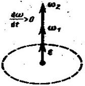 | Если , то вращение равномерное и его можно охарактеризовать периодом обращения Т (время за которое точка совершает полный оборот, то есть поворачивается на ), = Т соответствует = . Таким образом, , откуда .