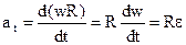 Угловым ускорением называется первая производная угловой скорости по времени,