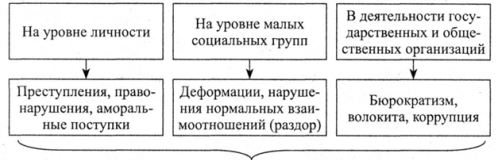 Их общая черта - вред, ущерб, наносимый обществу, социальной группе, другим людям, а также личности, допускающей негативные отклонения