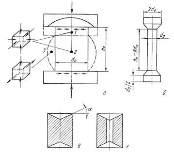 Рисунок 3 – Схема (а) и формы образцов (б-г) для испытаний на сжатие