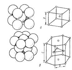 Рисунок 13- Основные виды кристаллических решеток и расположение в них атомов.